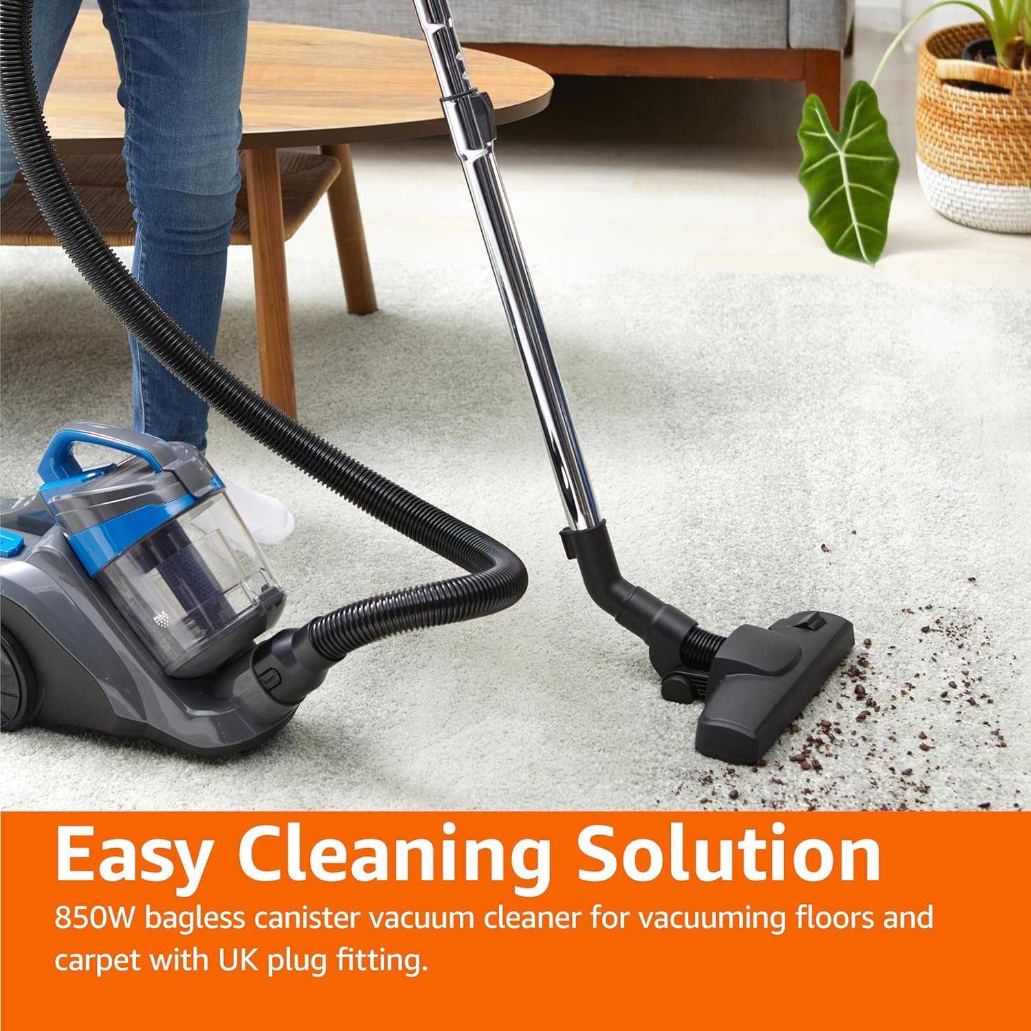 Amazon Basics Cylinder Vacuum Cleaner Bagless 1.7L Compact Lightweight with Triple-Action Nozzle, HEPA Filter, 850W, for Carpet and Hard Floor, Black & Blue